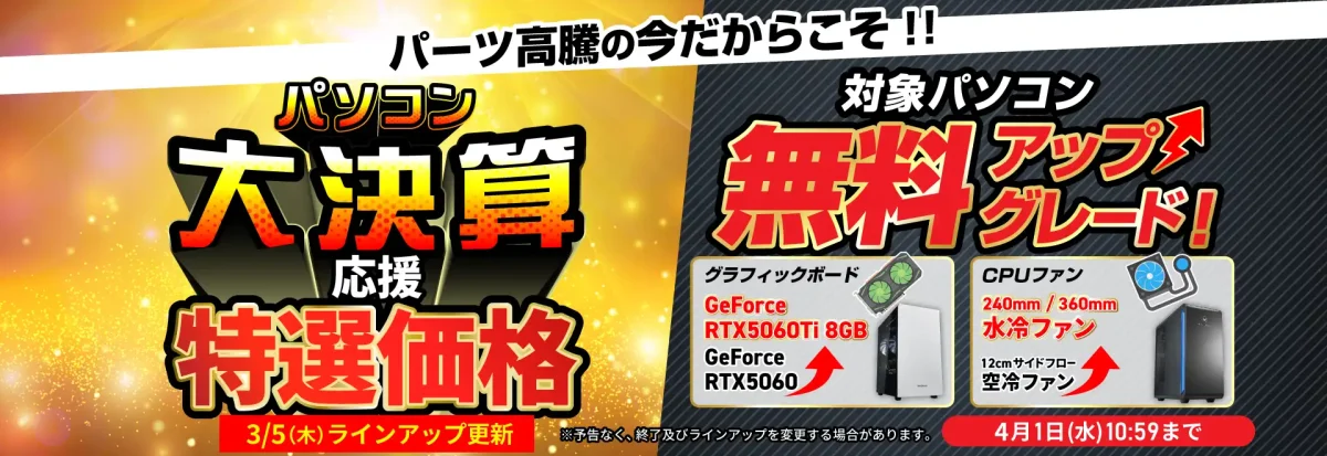 【4/1まで】パソコン大決算応援特別価格