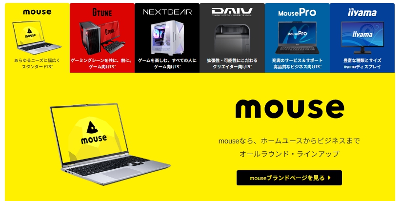 国内生産による高い品質と、幅広いラインナップで人気の『マウスコンピューター(mouse)』。