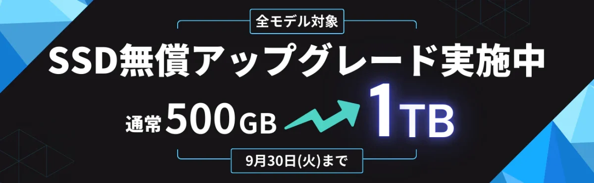 また、SSDの容量が大きいほど読み書きの余裕が増し、システム全体の快適性も向上します。コストを抑えつつ利便性を高めたい方は、こうしたキャンペーンを積極的に活用するのがおすすめです。