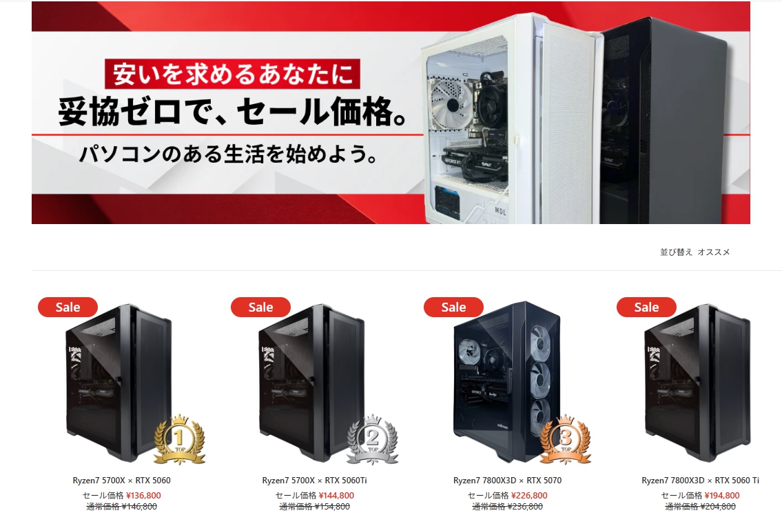 MDL.makeのゲーミングPCは、通常価格でもコストパフォーマンスに優れていますが、さらにお得に購入するならセールを狙うのがおすすめです。